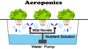 Aeroponics is the process of growing plants in an air or mist environment without the use of soil or an aggregate medium. The word “aeroponic” is derived from the Greek meanings of aer and ponos. Aeroponic culture differs from both conventional hydroponics, aquaponics, and in-vitro (plant tissue culture) growing. Unlike hydroponics, which uses a liquid nutrient solution as a growing medium and essential minerals to sustain plant growth, or aquaponics, which uses water and fish waste, aeroponics is conducted without a growing medium. It is sometimes considered a type of hydroponics, since water is used in aeroponics to transmit nutrients.